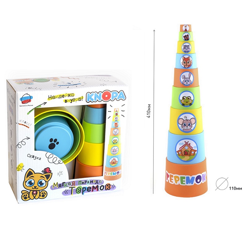 KNOPA. Мягкая пирамида стаканчики с наклейками "Теремок" арт.87031 /8 (Пластмастер)