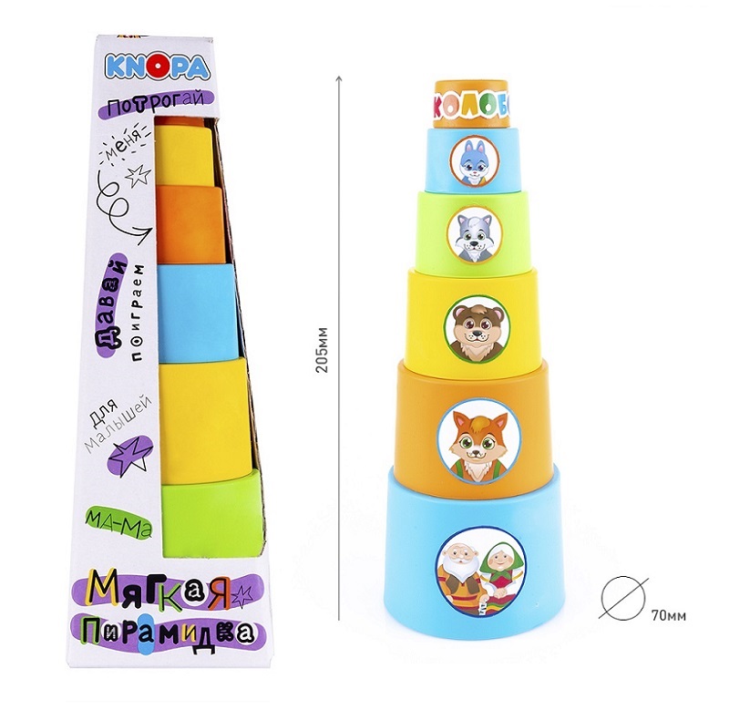 KNOPA. Мягкая пирамидка стаканчики с наклейками "Колобок" арт.87006 /10 (Пластмастер)
