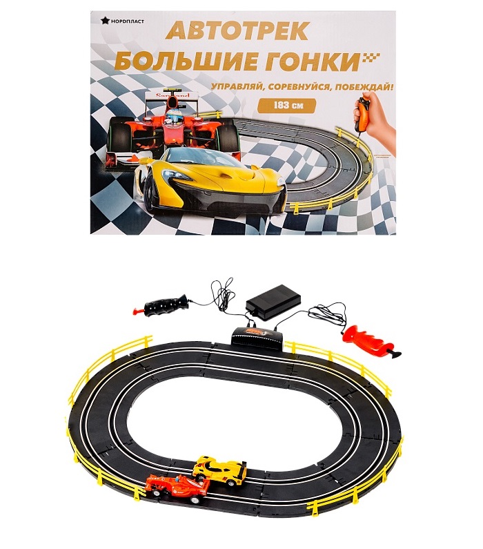 Нордпласт. Автотрек "Большие гонки" 183 см на ДУ, 2 машинки в комплекте арт.9/0111