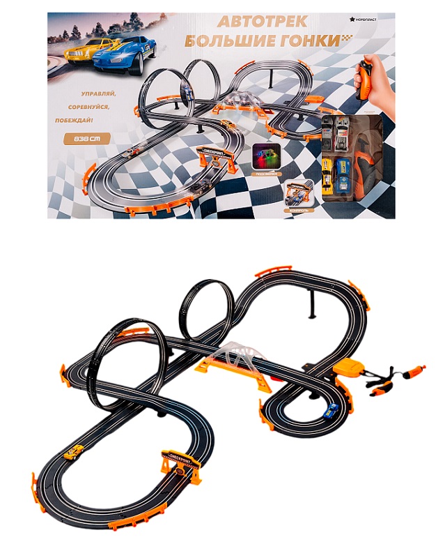 Нордпласт. Автотрек "Большие гонки" 838 см на ДУ, 2 машинки 1:43 в комплекте арт.9/0149