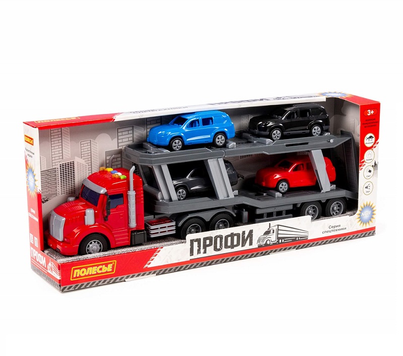Полесье. Автомобиль инерционный "Профи" тягач с полуприц.-автовозом (св., зв.) + 4 авто арт.83972
