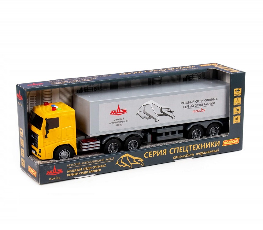 Полесье. Автомобиль инерционный "МАЗ" тягач с полуприцепом (со св. и звуком) (в коробке) арт.94124