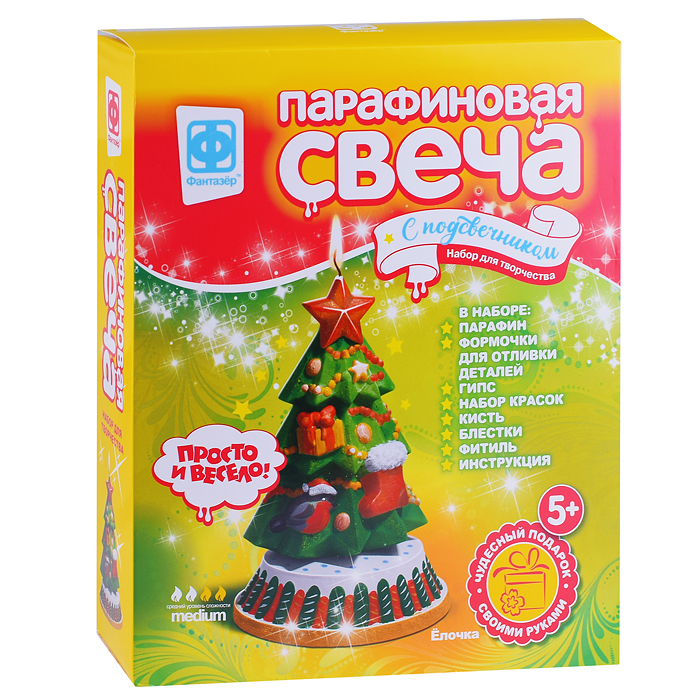 284202 Парафиновая свеча с подсвечником "Ёлочка"
