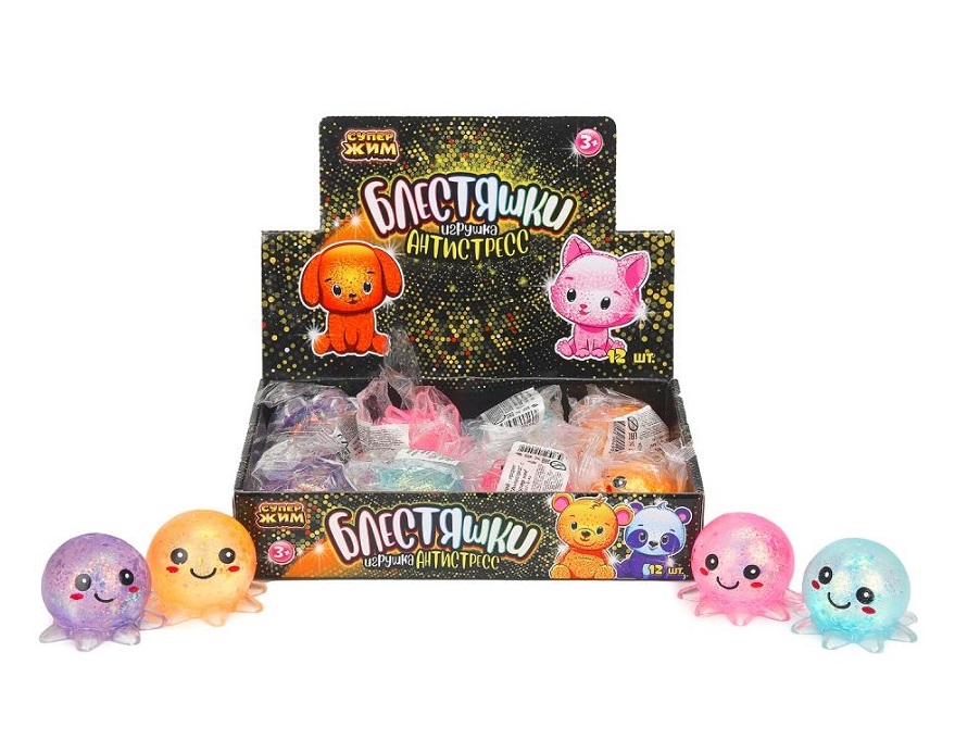 Супер Жим. Игрушка-антистресс "Блестяшки. Осьминог" в асс.. дисплей,уп-12шт. арт.ZXL124040902-1-RU
