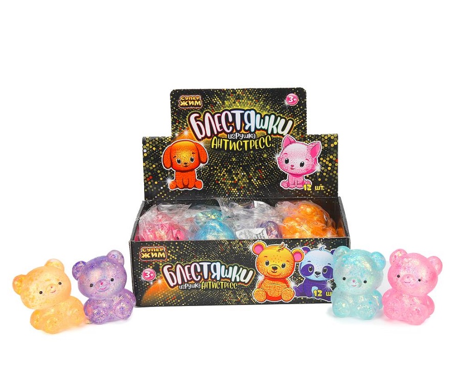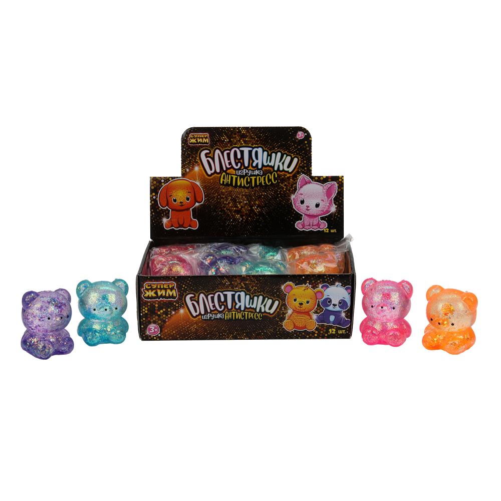 Супер Жим. Игрушка-антистресс "Блестяшки. Мишка" в ассорт.,дисплей, уп-12шт. арт.ZXL124040902-2-RU