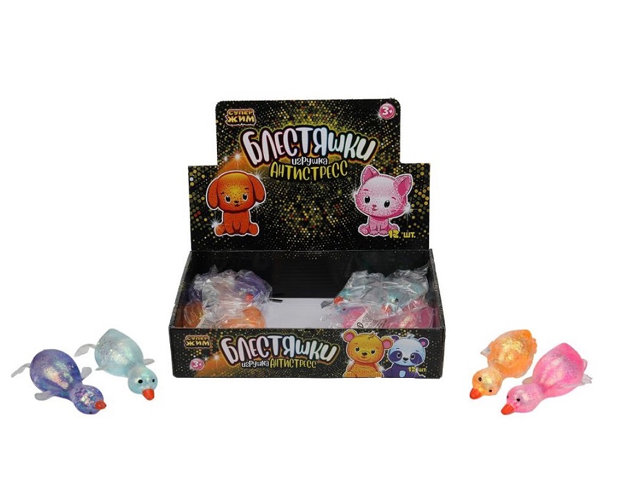 Супер Жим. Игрушка-антистресс "Блестяшки. Гусь" в ассорт., дисплей, уп-12шт. арт.ZXL124040902-5-RU