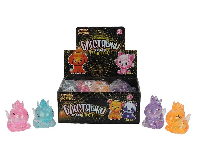 Супер Жим. Игрушка-антистресс "Блестяшки. Единорог" в ассорт., дисплей уп-12шт. арт.ZXL24040903-4-RU