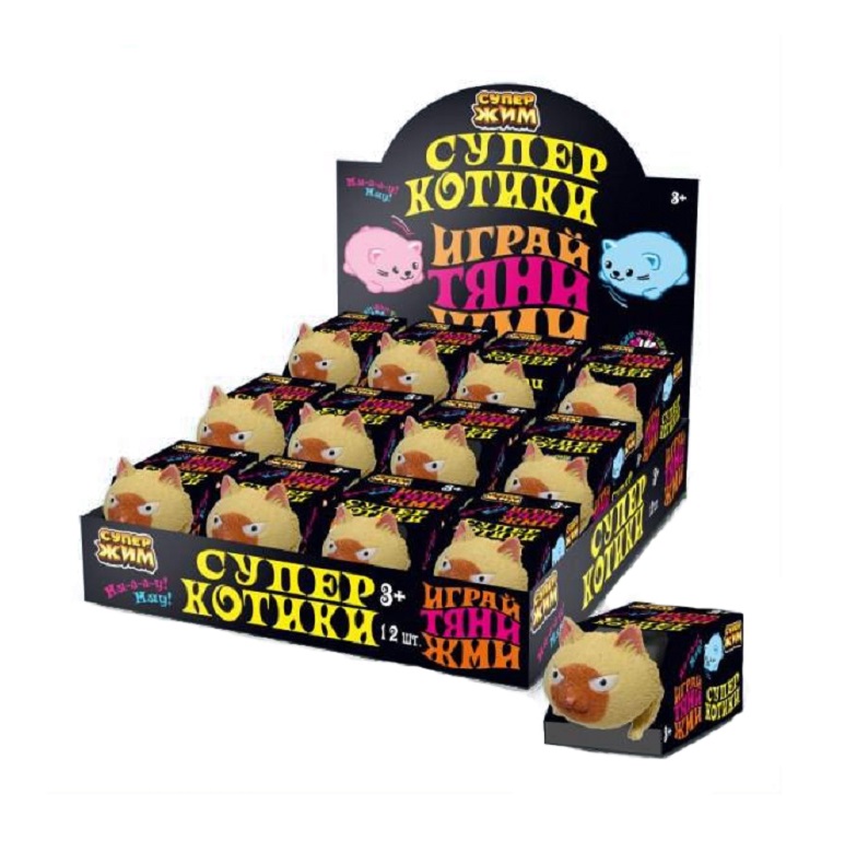 Супер Жим. Игрушка-антистресс "Котик" 8 см, дисплей, уп-12шт. арт.2305Z1718-RU