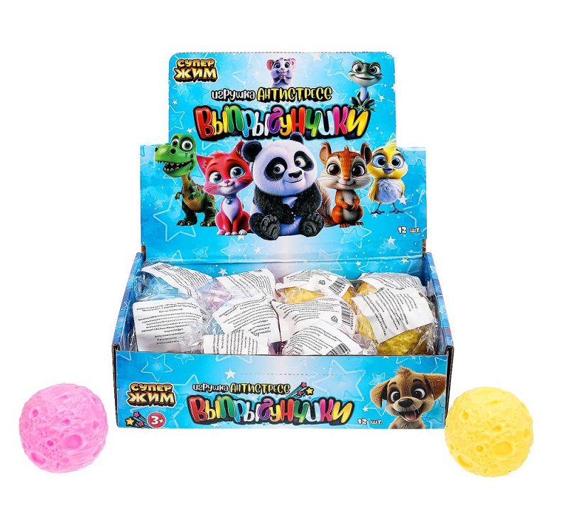 Супер Жим. Игрушка мялка "Мяч-попрыгун" 6см, цвета в асс.,уп-12шт в кор.12уп. арт.TG01H-JB-RU