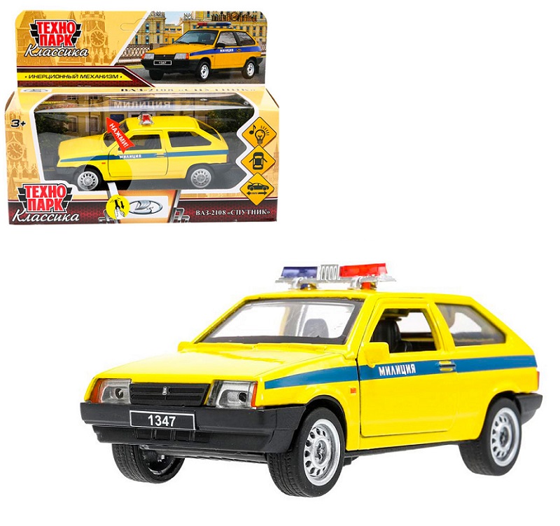 Технопарк. Модель "Ваз-2108 Спутник. Милиция" 12 см, металл, св-зв, двери, кор. арт.2108-12-SLPOL-YE