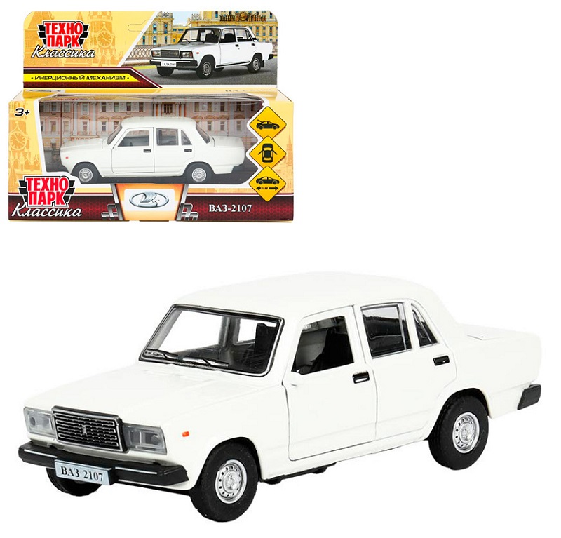 Технопарк. ВАЗ-2107 12 см, металл, двери, багаж, инерц, белый, кор. арт.2107-12-WH