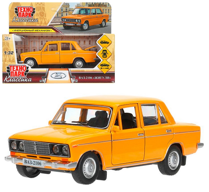 Технопарк. ВАЗ-2106 "Жигули" металл 12 см, двери, багаж, инерц, оранжевый, арт.2106-12-OG