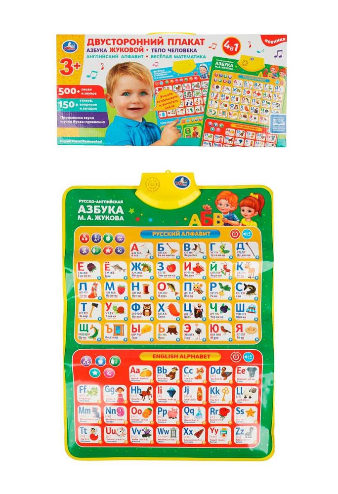 Умка. Двусторонний плакат Жукова М.А. 4 в1.азбука.650 слогов,песен,стихов.кор.бат. арт.HX0251-R61