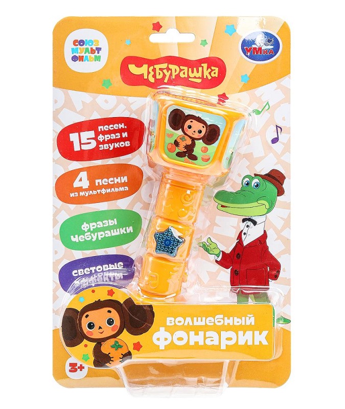 Умка. Волшебный фонарик "Чебурашка" 25+ песен, фраз и звуков, союзмультфильм, на блист. арт.HT1277-R