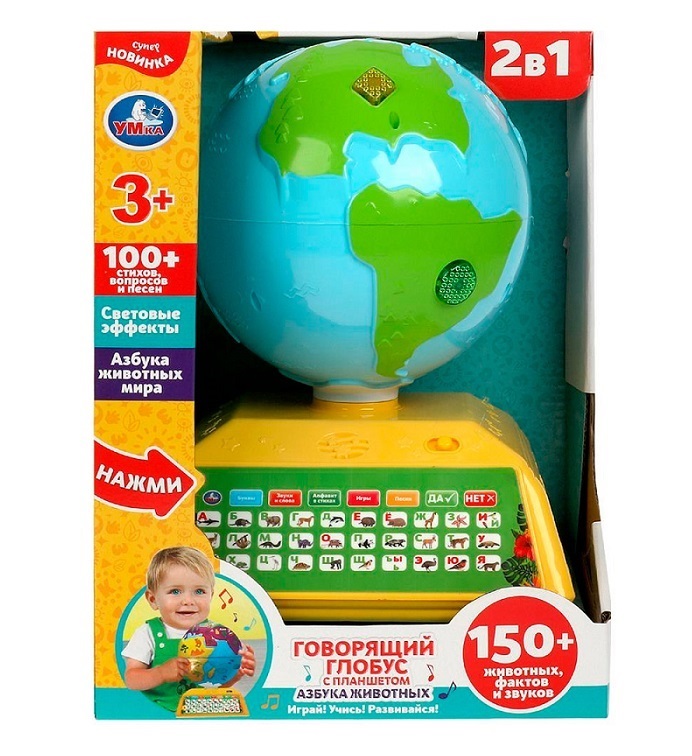 Умка. Говорящий глобус "Азбука животных" с планшетом 150 фактов,звуков в кор. арт.HT699-R