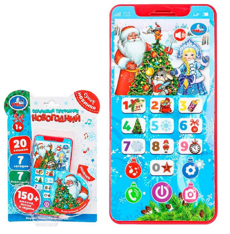Умка. Обучающий телефончик "Новогодний" 150 стихов, песен, звуков, блист, бат. арт.HT830-R34