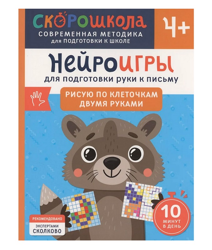 Росмэн. Скорошкола. Нейроигры для подготовки руки к письму "Рисую по клеточкам двумя руками" 4+