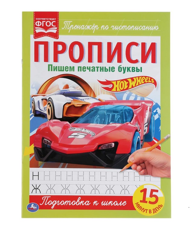 Умка. Прописи. Пишем печатные буквы "Hot Wheels" (Хот Вилс) 195х275 мм., 16 стр.
