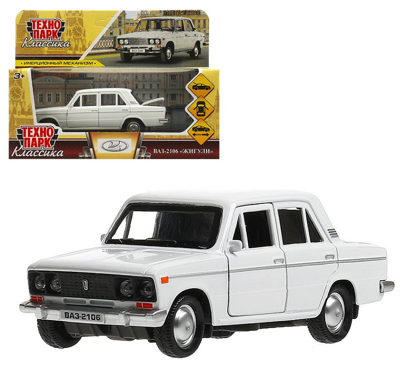 Технопарк. ВАЗ-2106 "Жигули" 12 см, металл., двери, багаж, инерц, белый арт.2106-12-WH