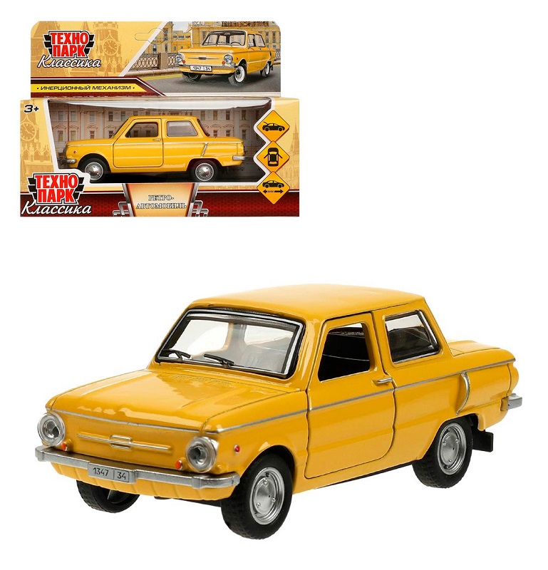 Технопарк. ЗАЗ-968а Ретро-автомобиль "Запорожец" 12 см, металл, двер, желтый, кор. арт.ZAZ968A-12-YE