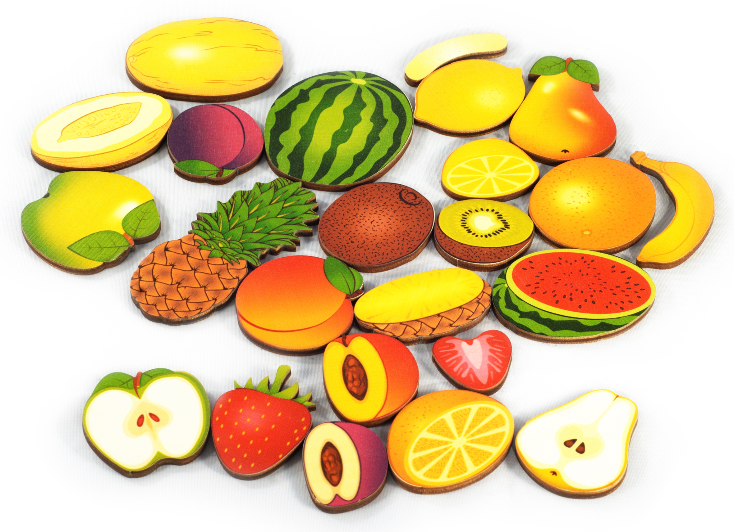 Деревянная доска "Часть и целое. Фрукты" - это игровая панель для развития логики, мелкой моторики, внимания, усидчивости и воображения Вашего малыша, которая состоит из 24-х деталей с изображениеми целых фруктов и их частей.
