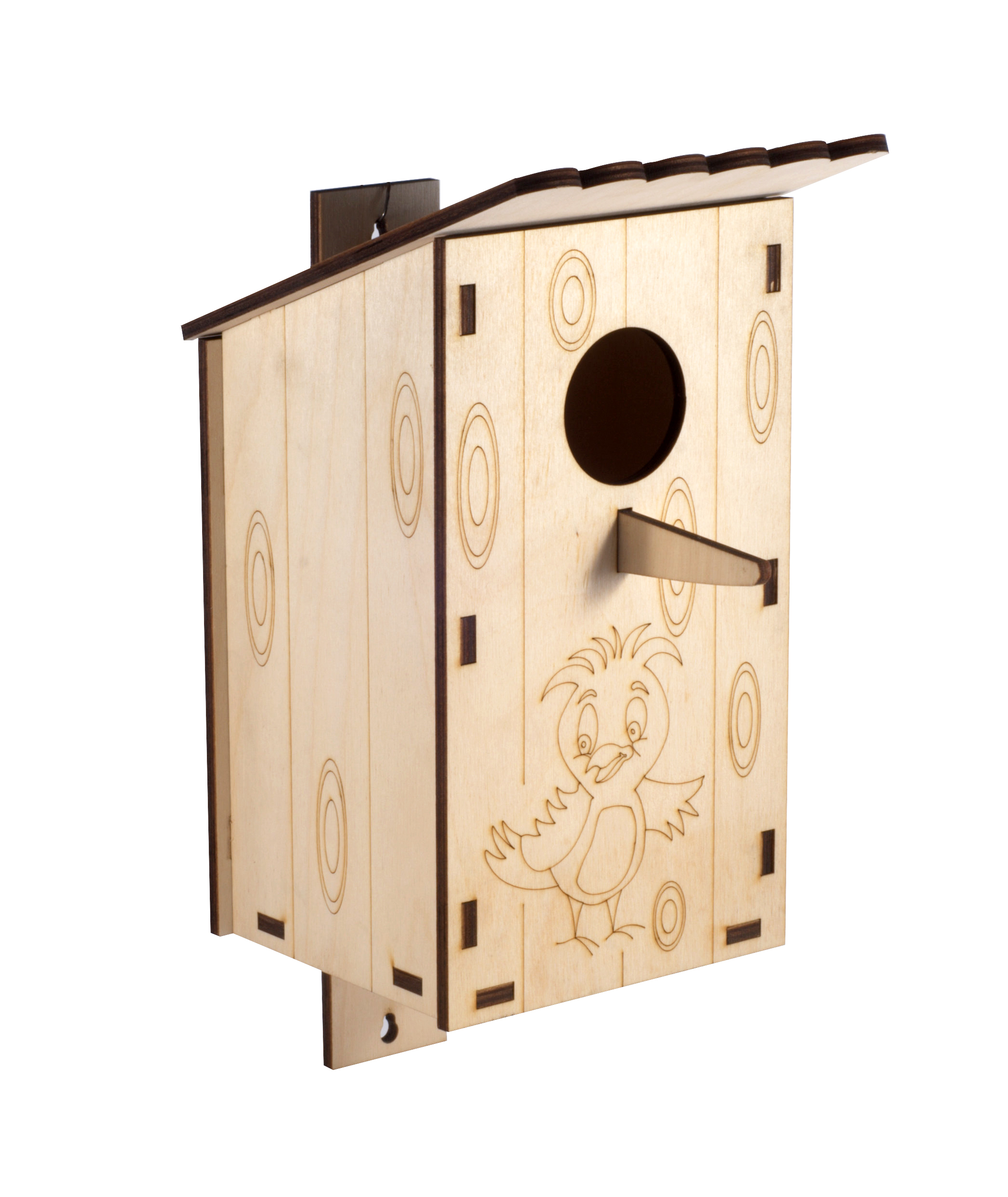 Комплект изделия: Боковая стенка - 2 шт, Задняя стенка - 1 шт, Передняя стенка - 1 шт, Дно - 1 шт, Насест - 1 шт, Крыша - 1 шт. Размер готового изделия: 30,5х13,5х14 см. Изготовлено из фанеры.