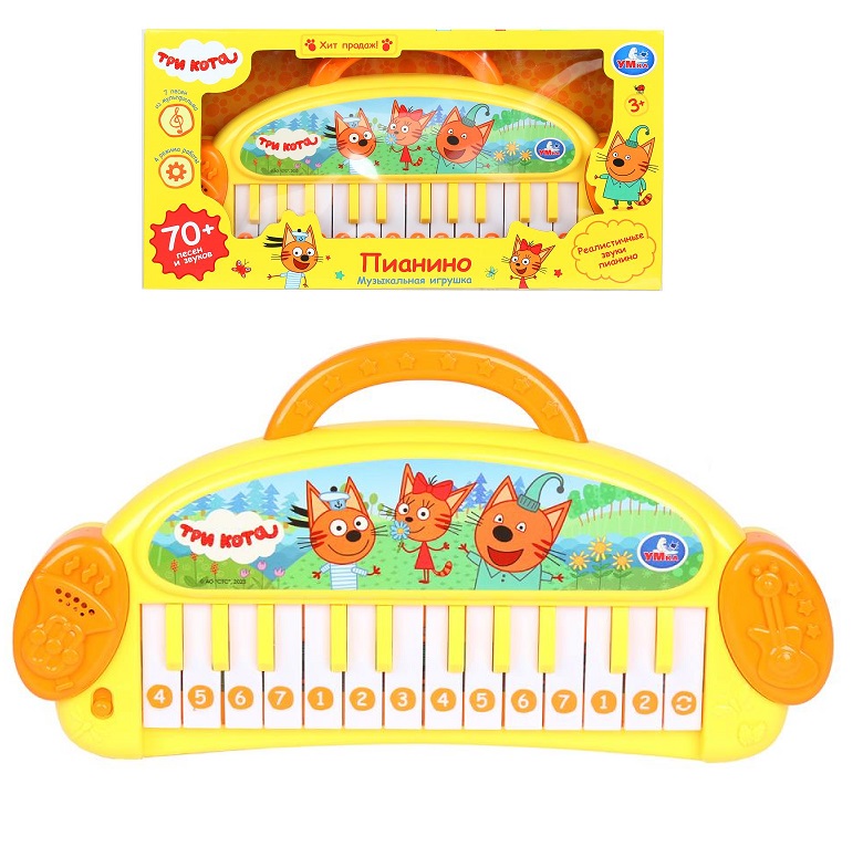 Умка. Пианино "Три Кота" с ручкой, 70+ песен, звуков, в кор. арт.ZY1378313-R1