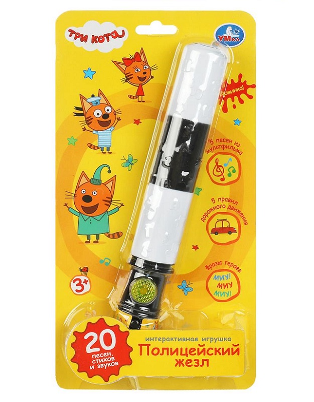 Умка. Полицейский жезл "Три Кота" 10 песен и правил + блист./бат. арт.HT903-R3