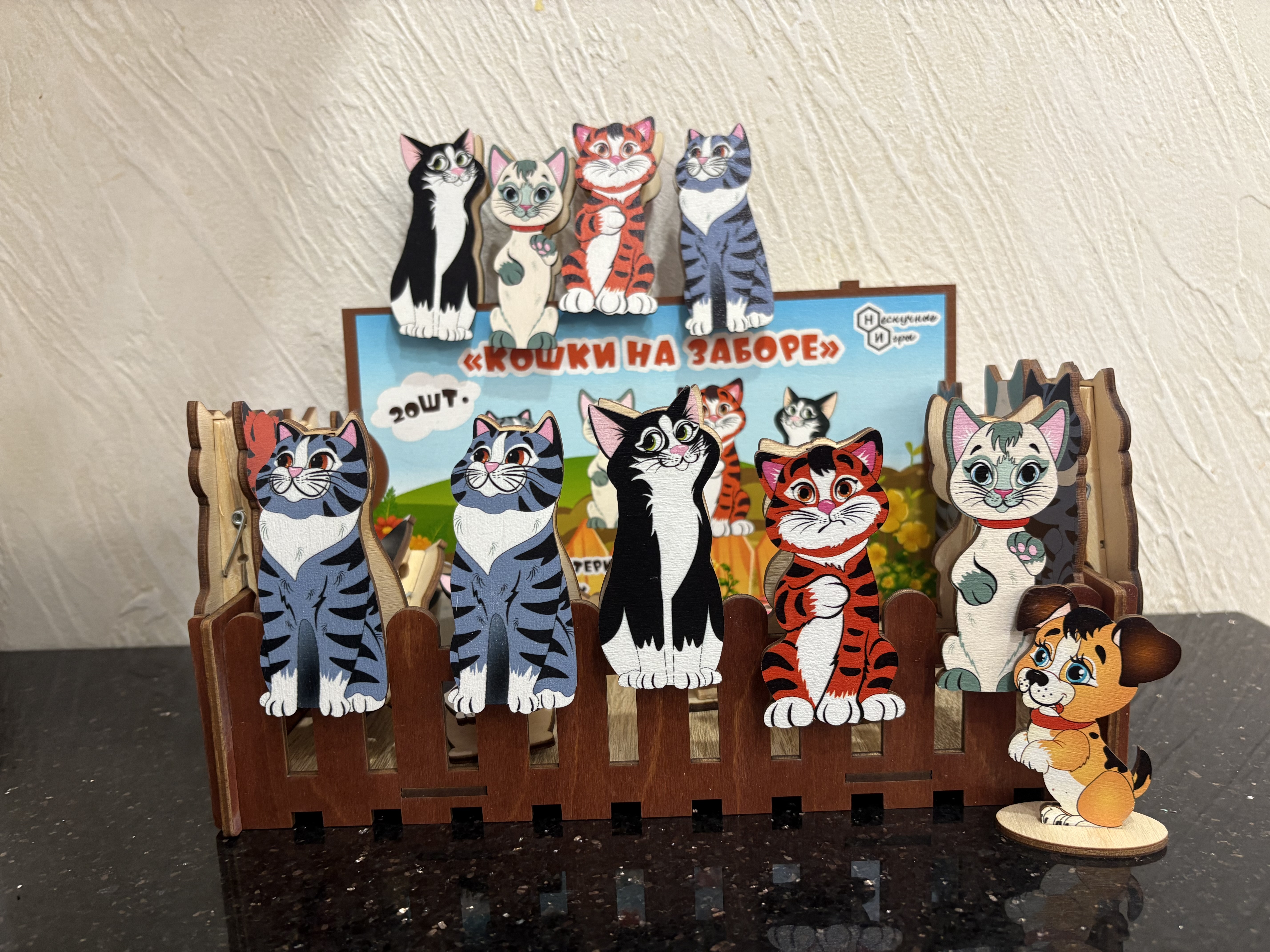 Набор счетного материала "Кошки на заборе" предназначен для обучения ребенка азам математики в увлекательной игровой форме. В набор входит 5 черных кошек, 5 белых, 5 серых и 5 рыжих. С большим удовольствием малыш будет "рассаживать" кошек на заборчике с помощью прищепок, получая представление о количестве предметов, осваивая порядковый счет, понятия "один", "много", "ноль", сравнивая количество ("больше" - "меньше") и производя простейшие арифметические действия. Прописаны правила заданий и игр: "Сколько кошек на заборе", "Много, мало, ни одной", "Порядковый счет", "Больше, меньше, столько же", "Сложение и вычитание", "Путаница". |