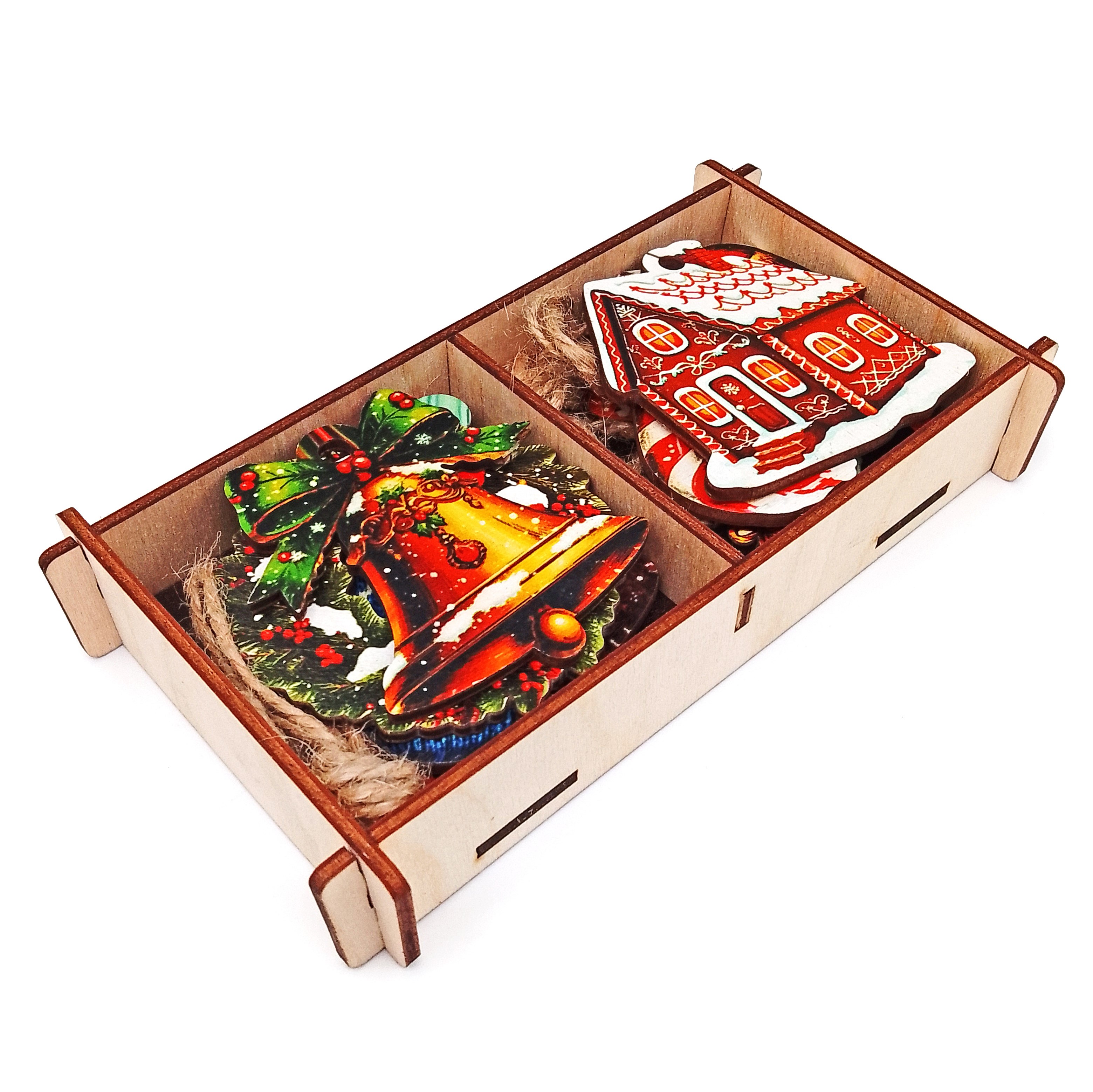 Набор «Новогодние деревянные флажки» поможет Вам и Вашему ребенку в увлекательной игровой форме украсить елку или создать симпатичную новогоднюю композицию к зимним праздникам. Флажки дополнят ваш праздничный интерьер элементами волшебной новогодней сказки. Соедините флажки с помощью веревки и украсьте Ваш дом этой веселой и познавательной гирляндой.