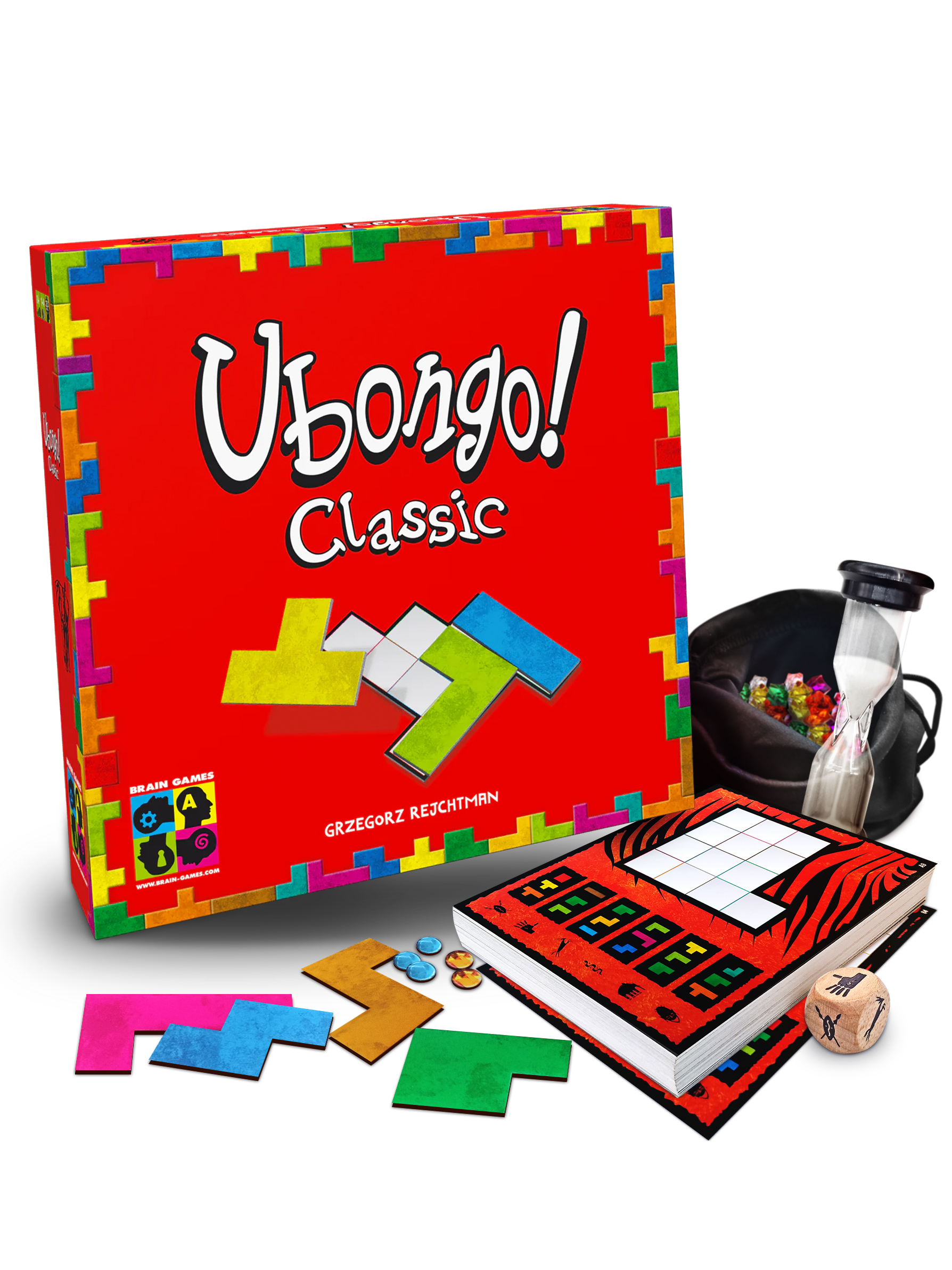 Убонго (Ubongo) Игра выпускается немецким издательством Kosmos. Выпущено в мире уже более 5 миллионов экземпляров! Игра - победитель и лауреат множеста международных премий! Сама игра языконезависима. Русские правила внутри коробки. В основе Ubongo полимино — плоские фигуры из нескольких соединённых квадратов, а также головоломка, цель которой — выложить их в прямоугольник или какую-либо ещё форму. Только в Ubongo решать головоломки приходится наперегонки, собирая по ходу игры разноцветные самоцветы. Побеждает же игрок, набравший больше всех самоцветов одного цвета. Игровое поле Ubongo состоит из 6 рядов. На каждый ряд выкладываются 12 разноцветных «самоцветов». Каждый игрок выставляет свою фишку напротив одного из рядов и получает 12 плоских фигур разной формы, состоящих из 2, 3, 4 или 5 квадратов. В начале раунда все игроки получают по игровой карте, на которой приведены несколько наборов фигур, а также форма, в которую их нужно выложить. Броском кубика определяется, какой из наборов из 3-4 фигур игрок будет использовать с текущей картой. Все игроки решают свои собственные головоломки, но наперегонки со временем и друг с другом. Результатом соревнования станут перемещения их фишек на главном игровом поле и сбор самоцветов. Все игроки, успевшие решить свою головоломку, получают 2 самоцвета. Игрок, решивший задачу первым, может передвинуть свою фишку вдоль главного поля (и рядов) на 1-3 клетки влево или вправо, а затем забрать с соответствующего ряда 2 самоцвета. Второй игрок, прежде чем взять 2 самоцвета, может передвинуть фишку только на 1-2 клетки. Третий — только на 1. Таким образом, чем быстрее игрок решит головоломку, тем шире его выбор. Собрав самоцветы, игроки получают по следующей игровой карте на руки и решают новые головоломки. Игра длится 9 раундов, по результатам которых выигрывает игрок, набравший больше всех самоцветов одного цвета. Рекомендуем также присмотреться к игре "Цветомино". |