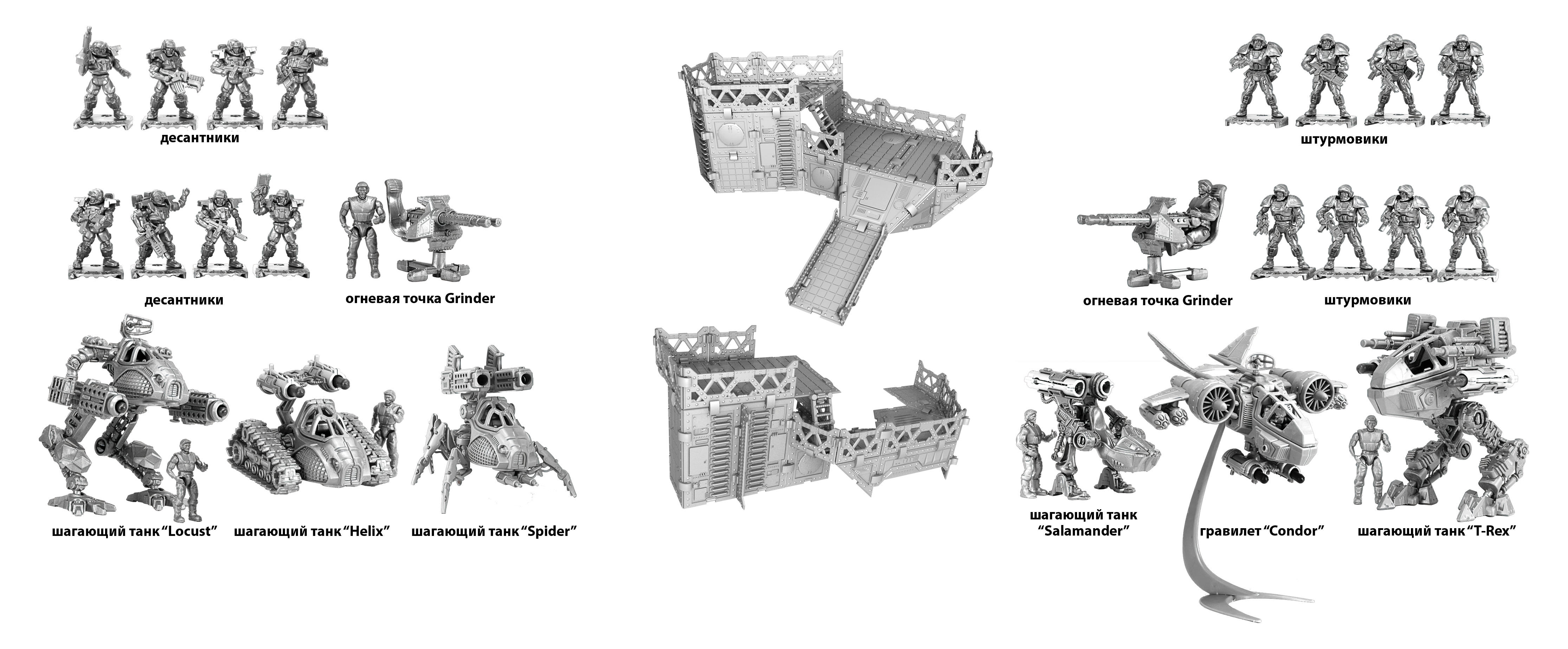 Серия Robogear Операция "Звездная пыль" ТМ "Технолог". Изготовлены по заказу компании "Нескучные игры" Игровая система с коллекционными фигурками воинов и боевой техники
